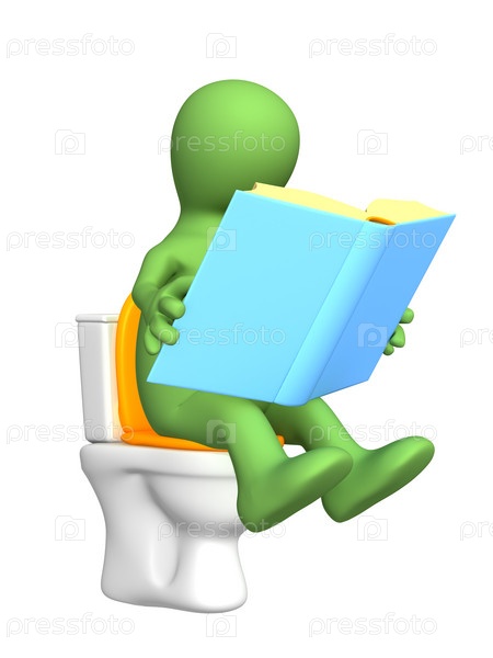 Стилизованный человечек, читающий книгу, сидящий на унитазе