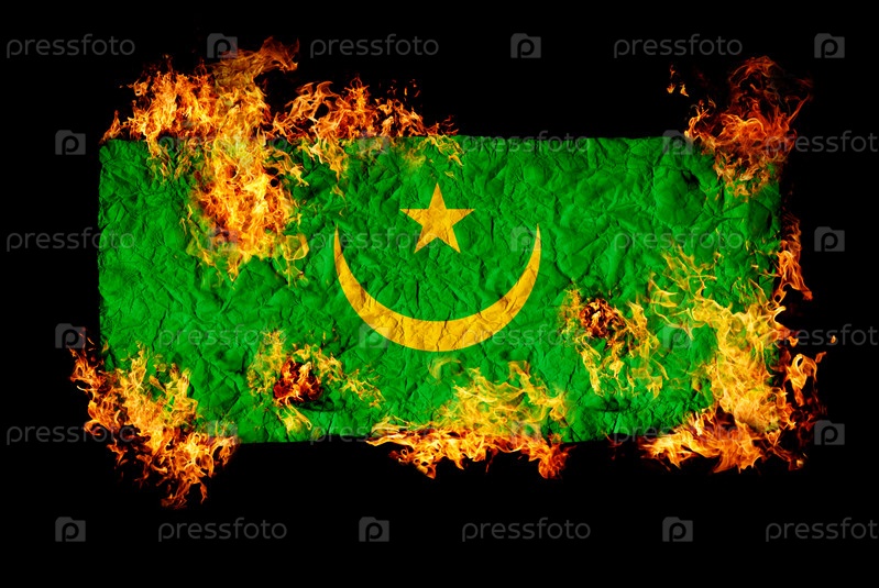 Флаг Мавритании в огне на черном фоне