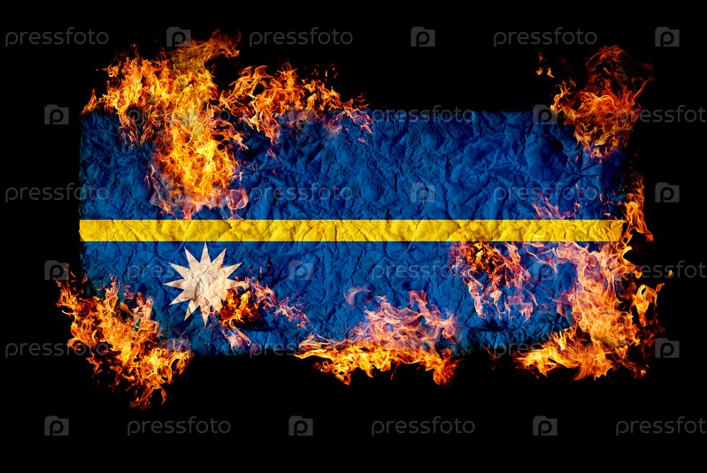 Флаг Науру в огне на черном фоне