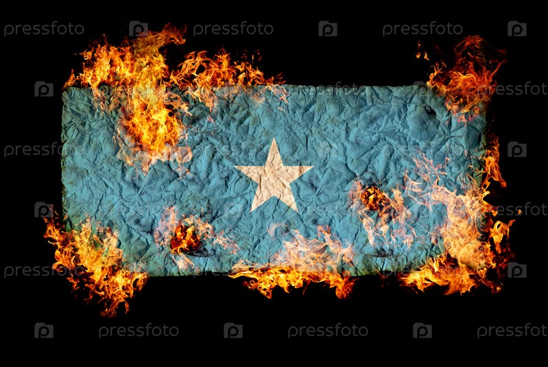 Флаг Сомали в огне на черном фоне