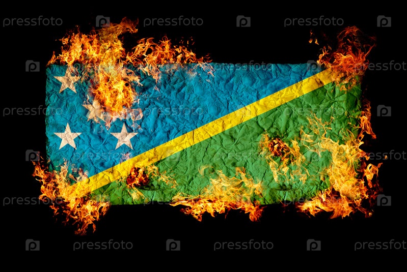 Флаг Соломоновых островов в огне на черном фоне