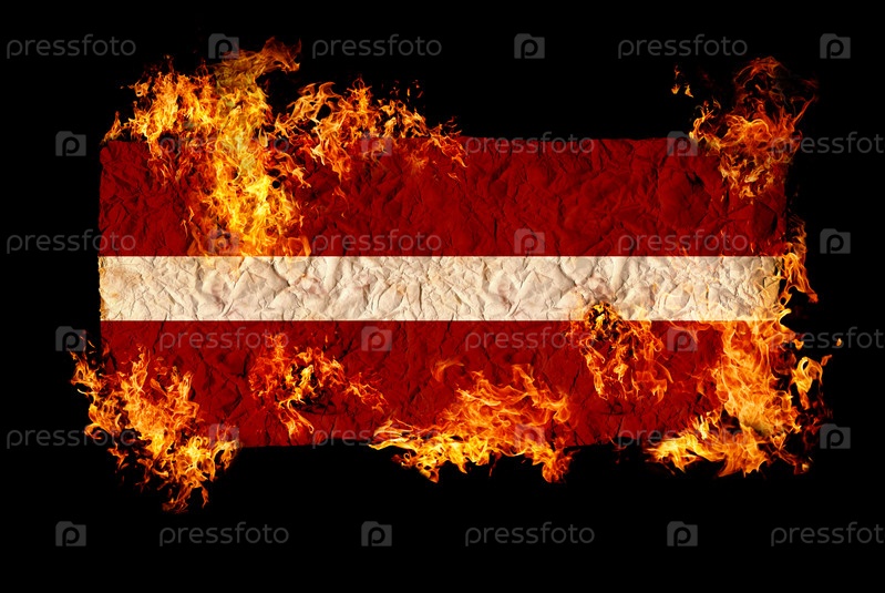 Флаг Латвии в огне на черном фоне