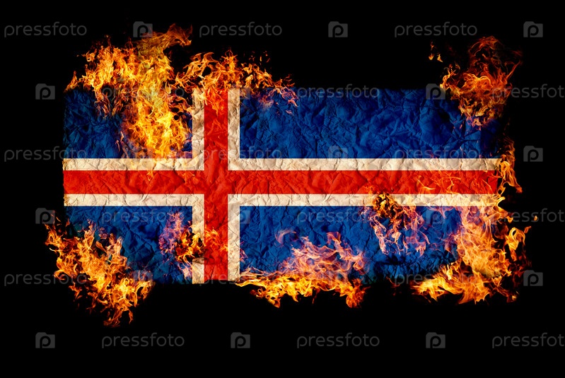 Флаг Исландии в огне на черном фоне