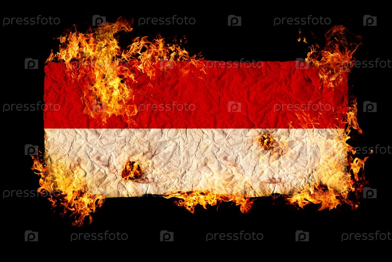 Флаг Индонезии в огне на черном фоне