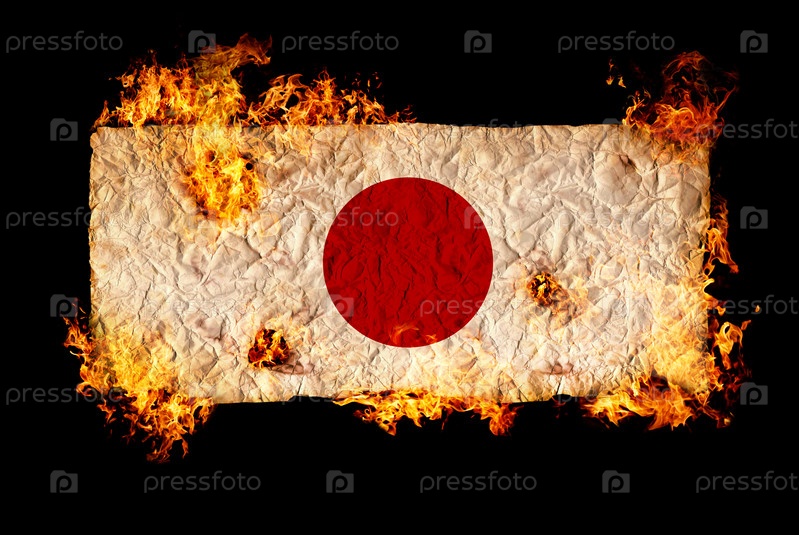 Флаг Японии в огне на черном фоне
