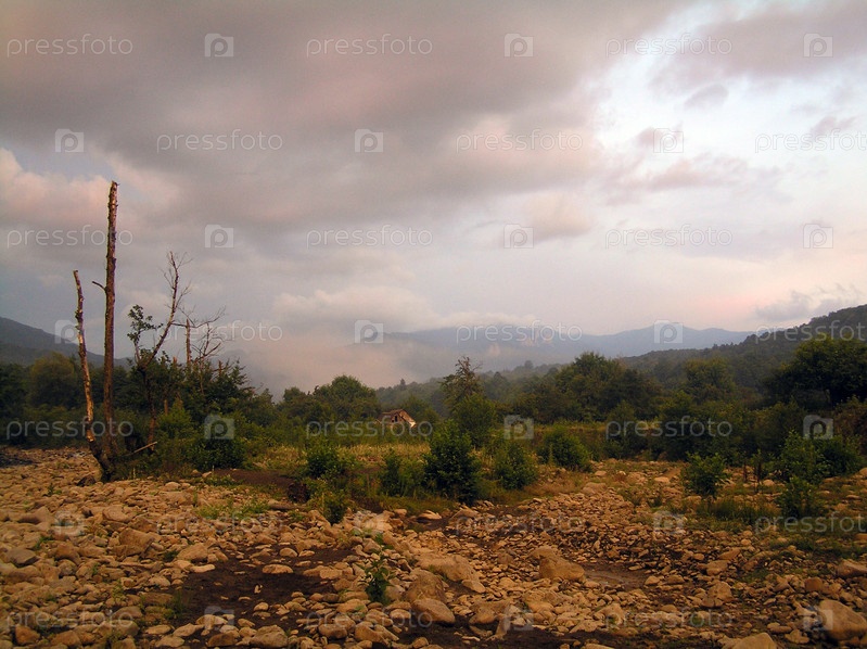 Горный пейзаж с облачным небом на закате