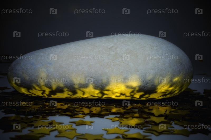 Овальный камень с золотыми звездами крупным планом