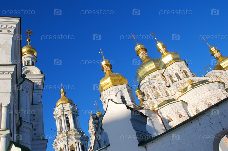 Православная церковь на фоне неба. Киево-Печерская Лавра
