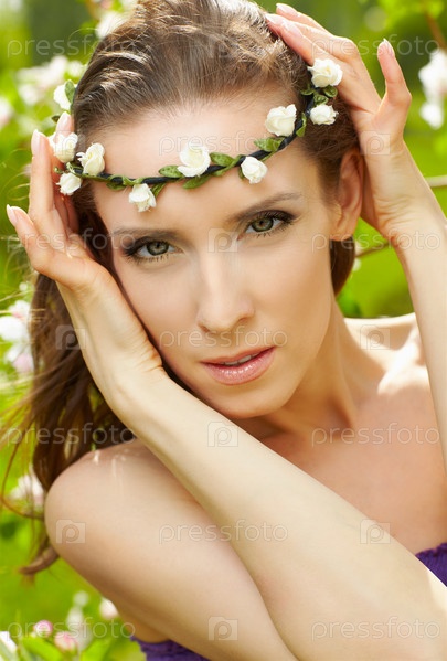 Женщина с красивой кожей и венком на голове