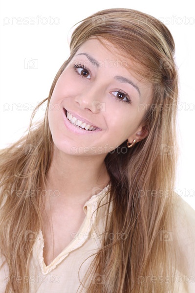 Портрет молодой девушки на белом фоне