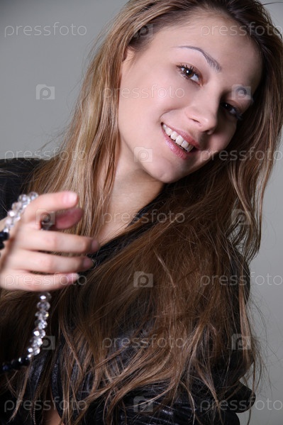 Портрет молодой девушки на сером фоне