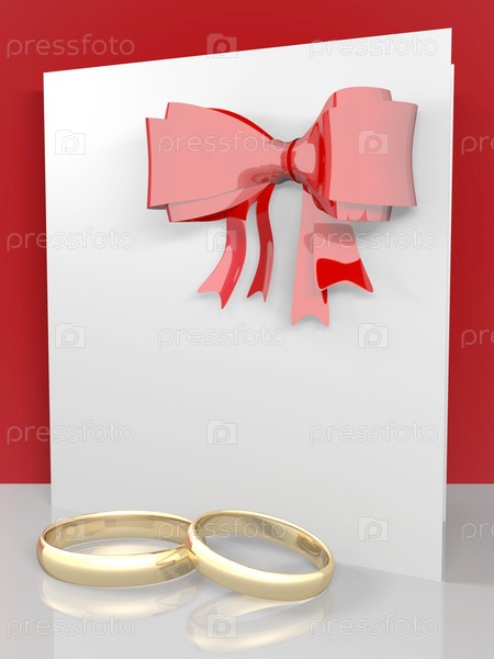 Обручальные кольца и открытка с бантом
