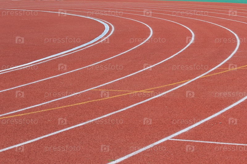 Беговая дорожка с разметкой на легкоатлетическом стадионе