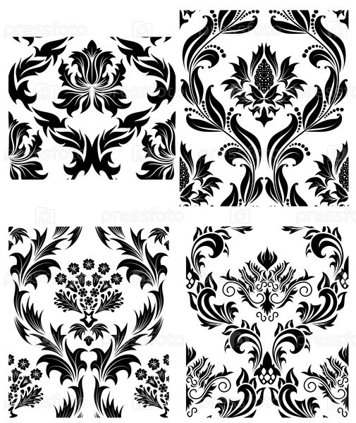 Набор цветочных узоров на белом фоне