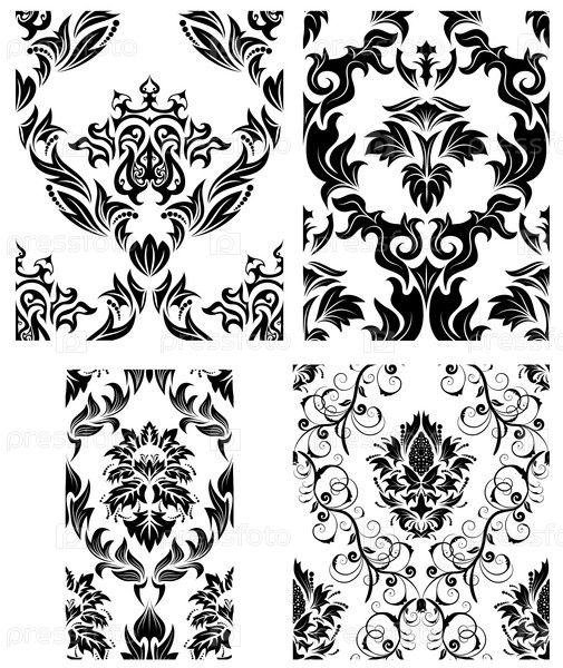 Набор цветочных узоров на белом фоне
