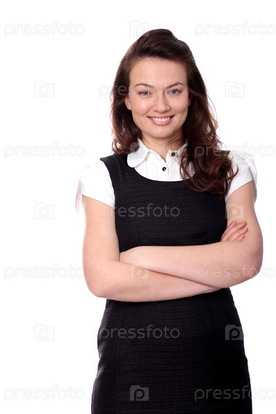 Улыбающаяся брюнетка на белом фоне