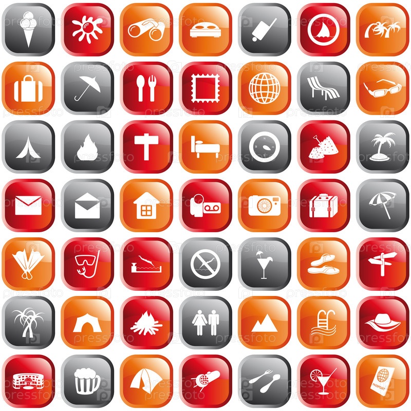 Набор иконок для веб-сайта на тему "туризм и отдых"