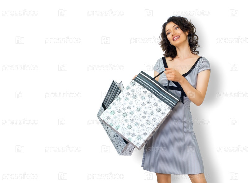 Красивая женщина с покупками в руках