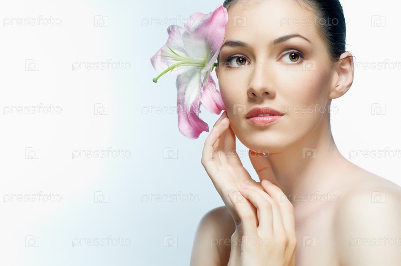 Красивая девушка с лилией в волосах
