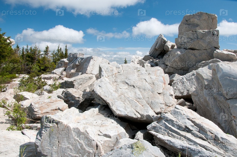 Кварцитовые останцы на вершине хребта Зюраткуль, Южный Урал