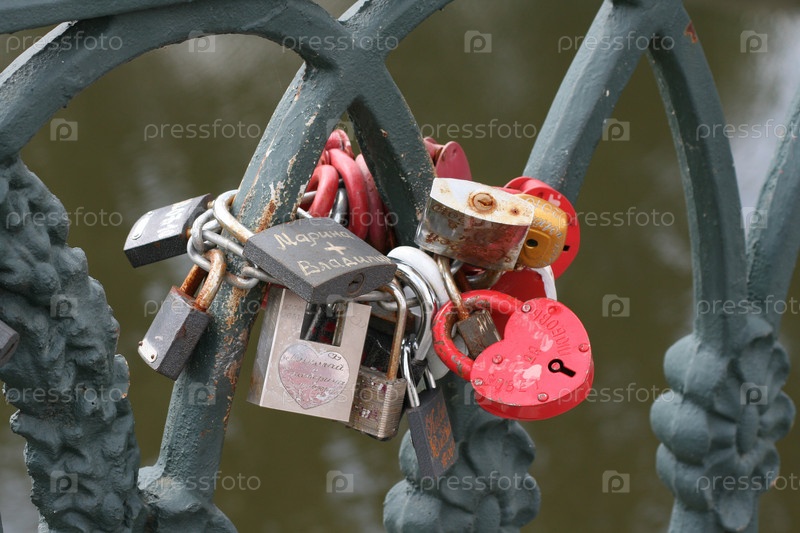 Свадебные замки на ограждении моста