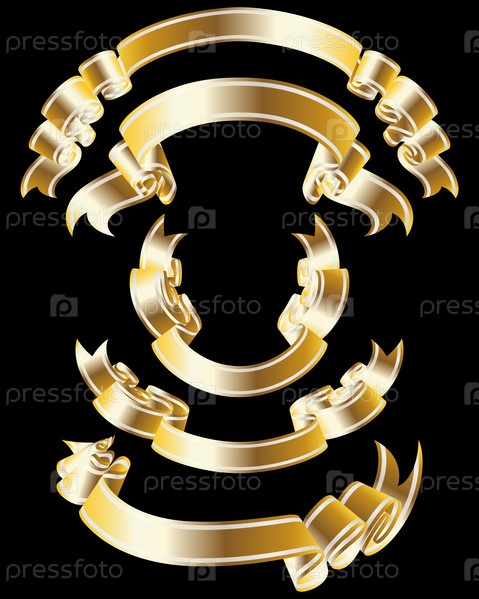 Набор золотых лент на черном фоне