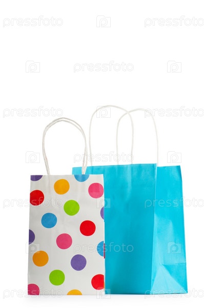 Яркие подарочные пакеты на белом фоне
