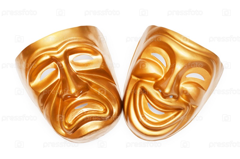 Две золотые маски на белом фоне