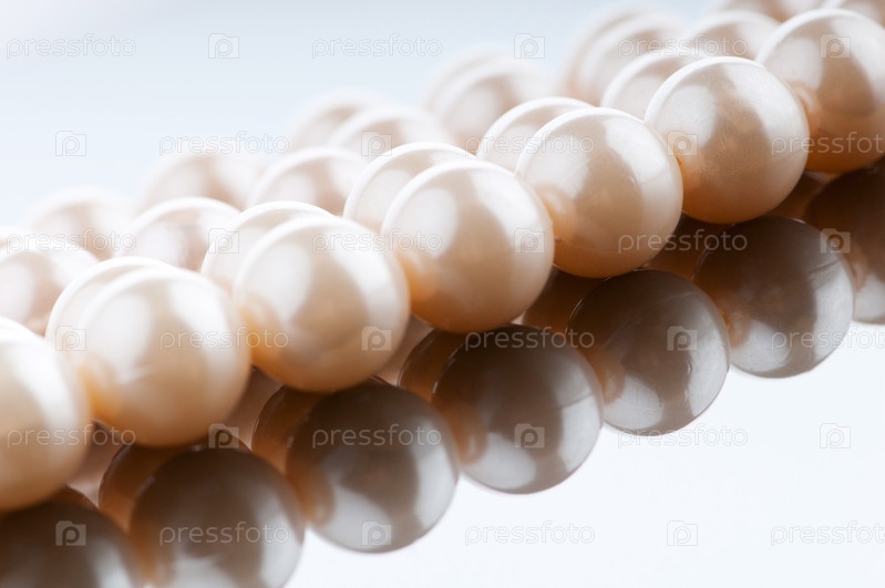 Жемчужное ожерелье лежит на зеркальной поверхности