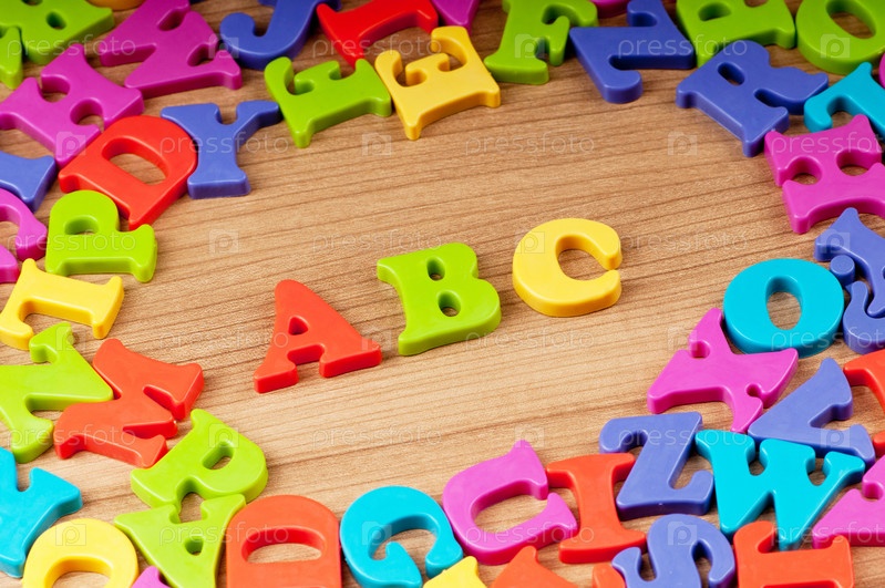 Цветные буквы английского алфавита на деревянной поверхности