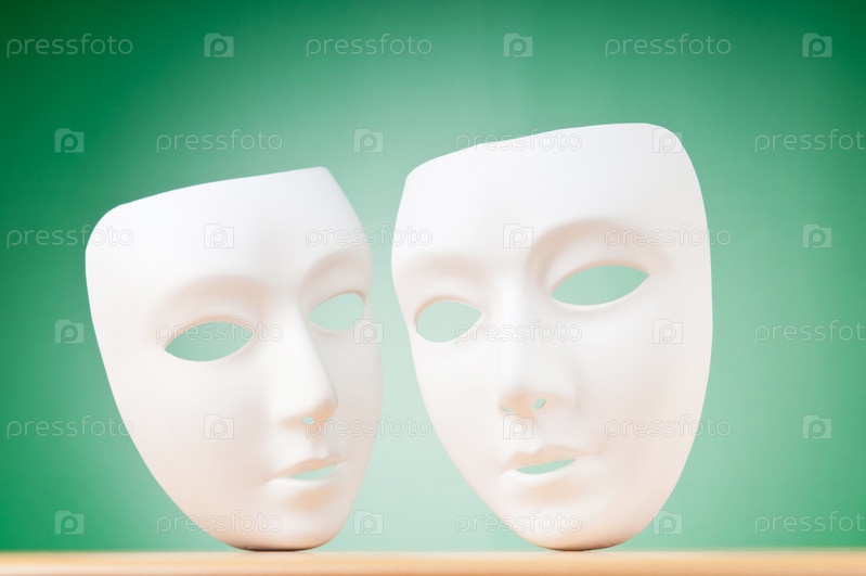 Две белые маски на зеленом фоне