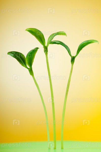Зеленые саженцы на желтом фоне