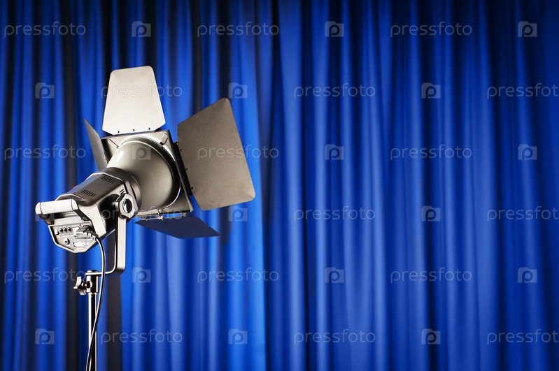 Прожектор на фоне синего занавеса