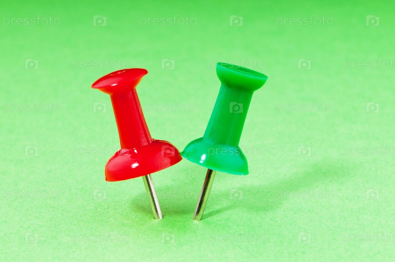 Цветные канцелярские кнопки на зеленом фоне