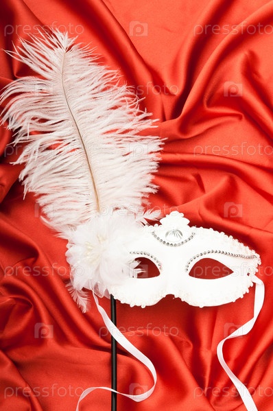Театральная маска с пером на красном
