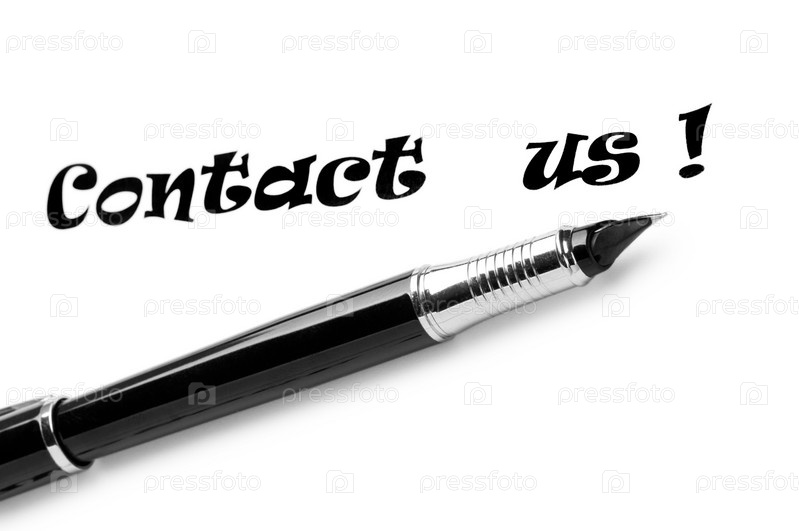 Гелевая ручка и пометка "Свяжитесь с нами" на белом фоне
