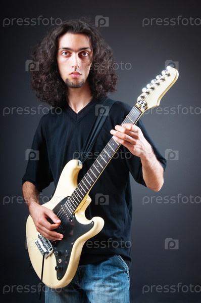 Мужчина с гитарой на темном фоне