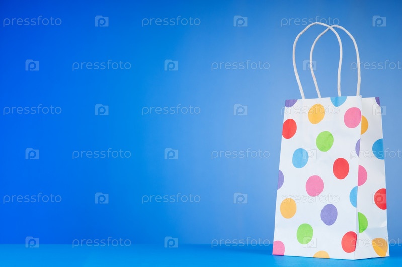 Подарочный пакет на синем фоне