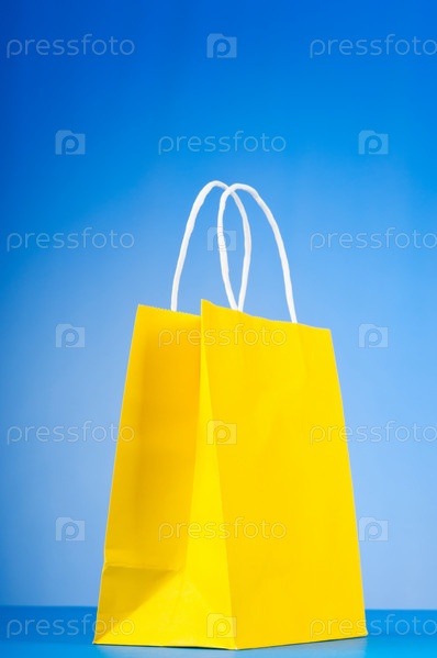 Желтый пакет на синем фоне