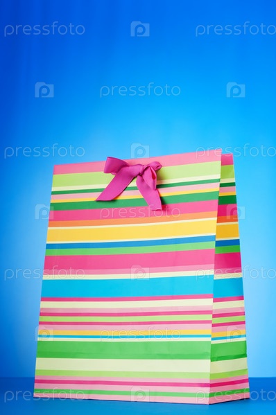Подарочный пакет на синем фоне