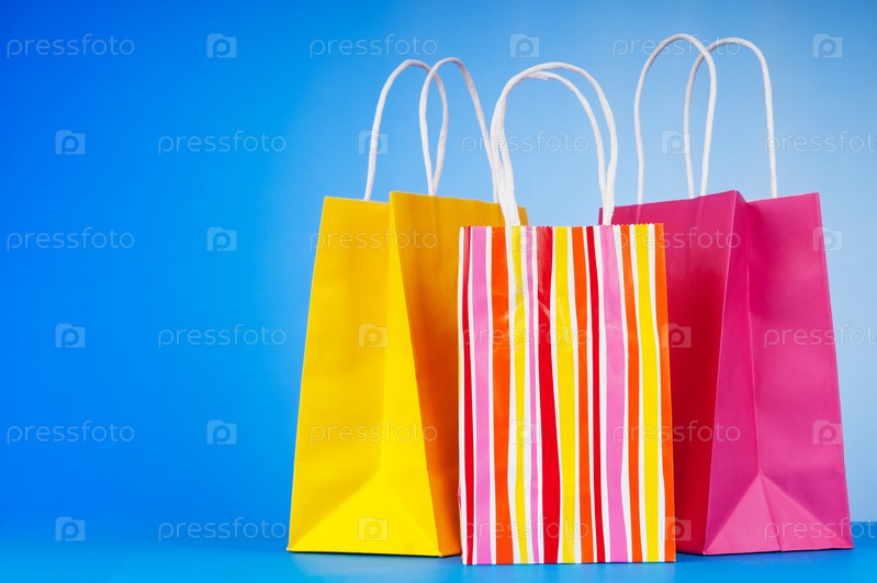 Подарочные пакеты на синем фоне