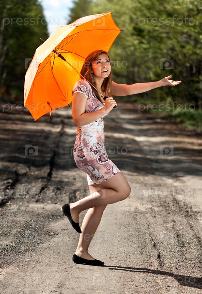 Девушка с оранжевым зонтиком