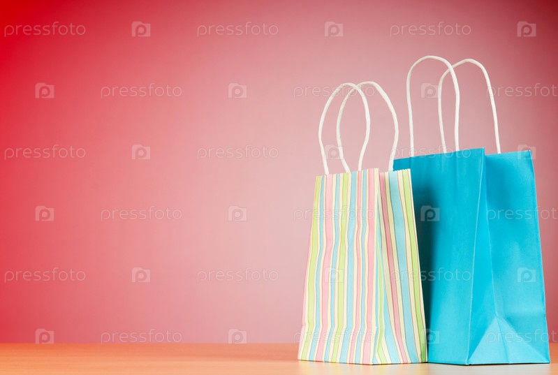 Подарочные пакеты на красном фоне