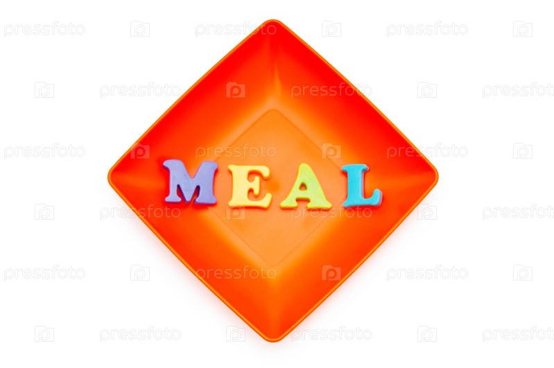 Тарелка с надписью 'MEAL' на белом фоне