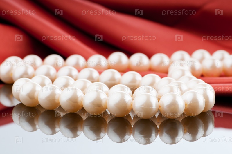 Жемчужное ожерелье на фоне атласа
