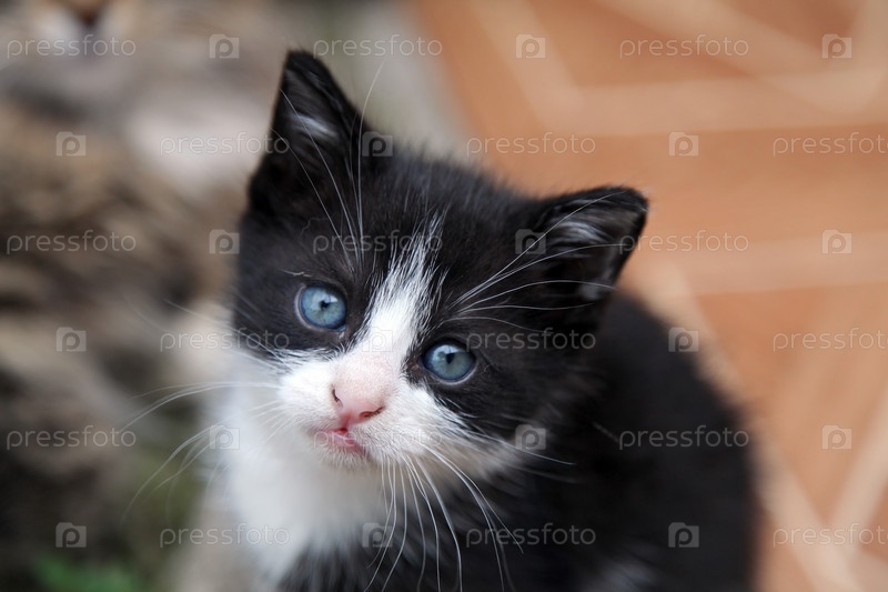 Черно-белый котенок, портрет
