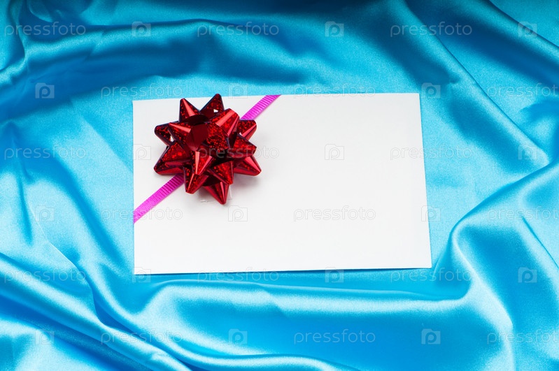 Чистая карточка с бантом на голубом фоне