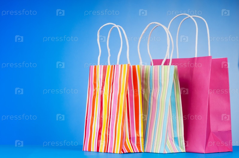 Яркие бумажные пакеты на голубом фоне