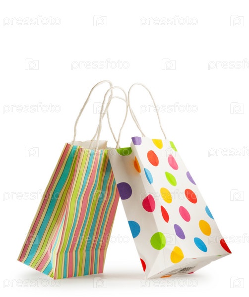 Яркие бумажные пакеты изолированы на белом