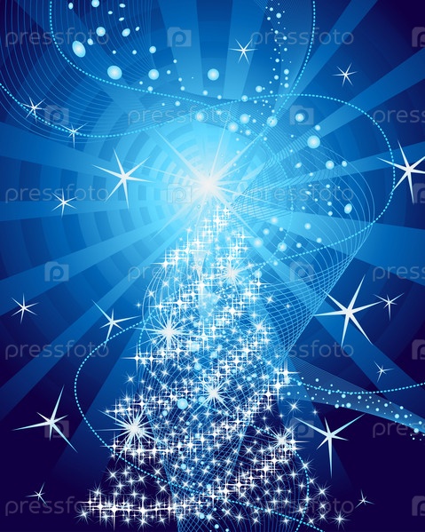 Новогодний фон с елкой и горящими звездочками